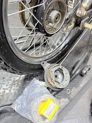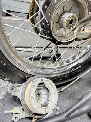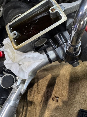 前後のブレーキ交換です。フロントブレーキ液もしっかり交換します